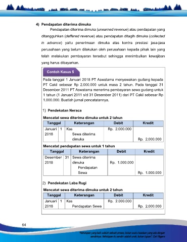in advance) yaitu penerimaan dimuka atas kontra prestasi jasa-jasa