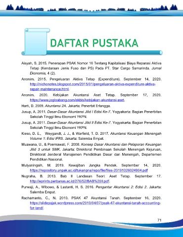 Aisyah, S. 2015. Penerapan PSAK Nomor 16 Tentang Kapitalisasi Biaya Reparasi Aktiva