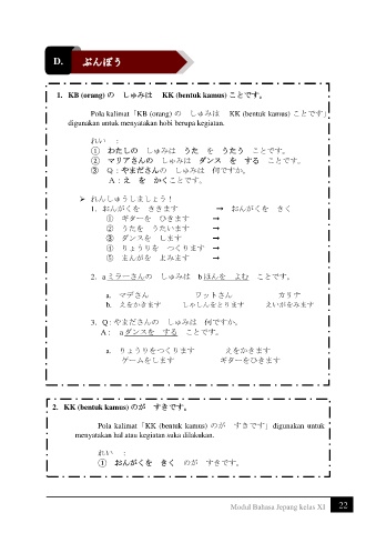 1. KB (orang) の しゅみは KK (bentuk kamus) ことです。