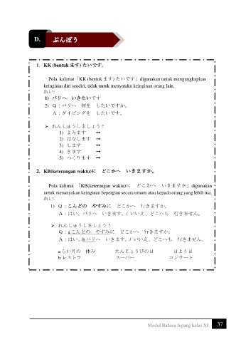 2. KB(keterangan waktu)に どこかへ いきますか。