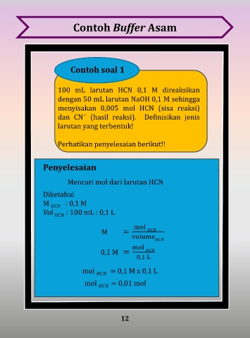 menyisakan 0,005 mol HCN (sisa reaksi)