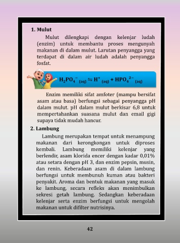 atau setara dengan pH 3, dan enzim pepsin, musin,