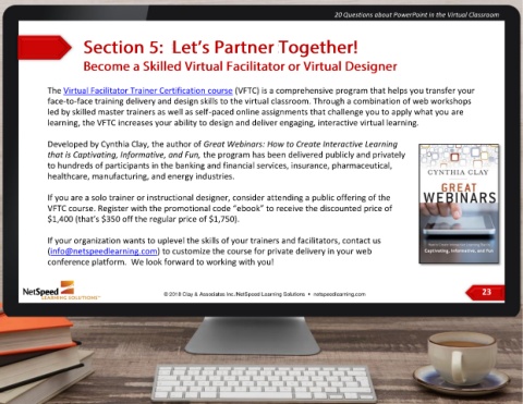 Developed by Cynthia Clay, the author of Great Webinars: How to Create Interactive Learning