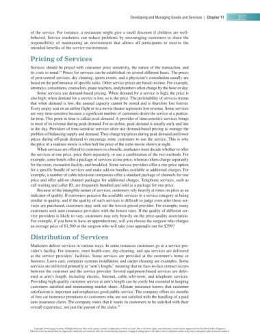 also high; when demand for a service is low, so is the price. The perishability of services means