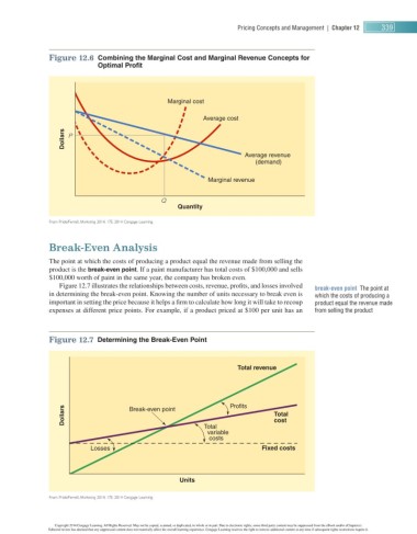 Figure 12.7 illustrates the relationships between costs, revenue, profi ts, and losses involved break-even point The point at
