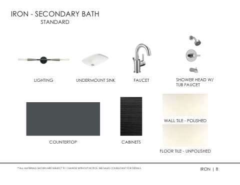**ALL MATERIALS SHOWN ARE SUBJECT TO CHANGE WITHOUT NOTICE. SEE SALES CONSULTANT FOR DETAILS.