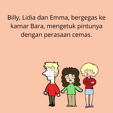 Billy, Lidia dan Emma, bergegas ke kamar Bara, mengetuk pintunya dengan perasaan cemas.