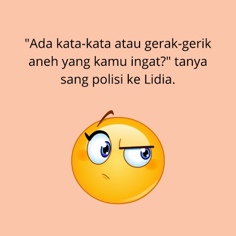"Ada kata-kata atau gerak-gerik aneh yang kamu ingat?" tanya sang polisi ke Lidia.
