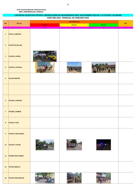 LAPORAN KEGIATAN PATROLI BERDASARKAN KERAWANAN DAN JAM RAWAN POLDA s.d POLRES JAJARAN