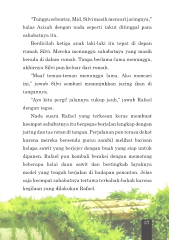 “Ayo kita pergi! jalannya cukup jauh,” jawab Rafael