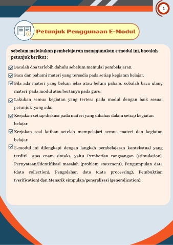 E-modul ini dilengkapi dengan langkah pembelajaran kontekstual yang