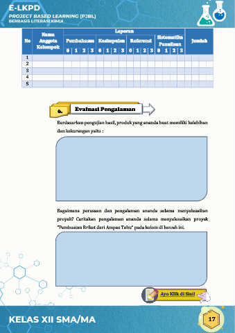 proyek? Ceritakan pengalaman ananda selama menyelesaikan proyek