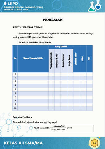 Sesuai dengan rubrik penilaian sikap ilmiah, buatkanlah penilaian untuk masing-