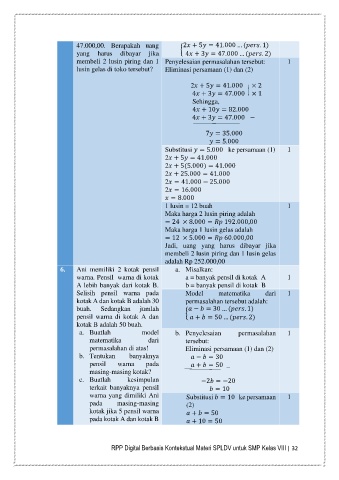 RPP Digital Berbasis Kontekstual Materi SPLDV untuk SMP Kelas VIII | 32