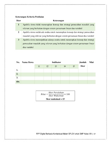 RPP Digital Berbasis Kontekstual Materi SPLDV untuk SMP Kelas VIII | 37