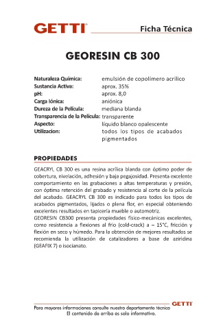 GEACRYL CB 300 es una resina acrílica blanda con óptimo poder de
