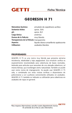 usar como resina de impregnación. Se puede usar GEACRYL H 71