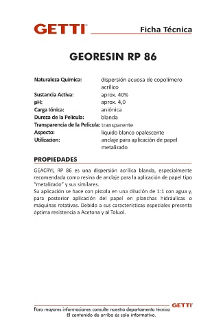 GEACRYL RP 86 es una dispersión acrílica blanda, especialmente