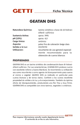 difenil-sulfónico. Por sus características, GEATAN DHS produce cueros