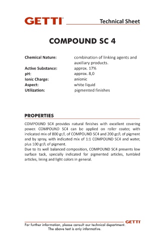Due to its well balanced composition, COMPOUND SC4 presents low