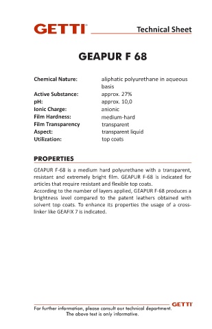 resistant and extremely bright film. GEAPUR F-68 is indicated for