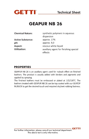 GEAPUR NB 26 is an auxiliary agent used for nubuck effect on finished