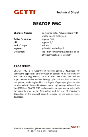 GEATOP FMC is a water-based topcoat specially developed for
