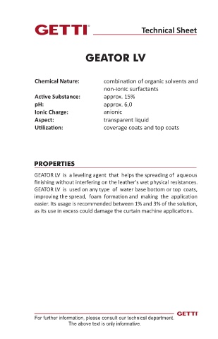 GEATOR LV is a leveling agent that helps the spreading of aqueous