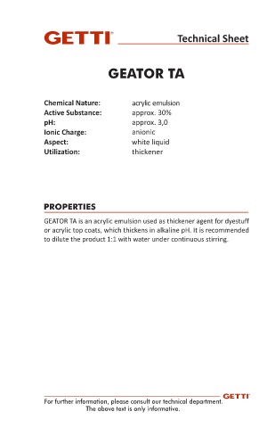 GEATOR TA is an acrylic emulsion used as thickener agent for dyestuff
