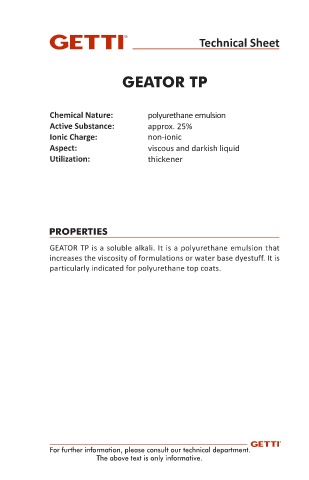 GEATOR TP is a soluble alkali. It is a polyurethane emulsion that