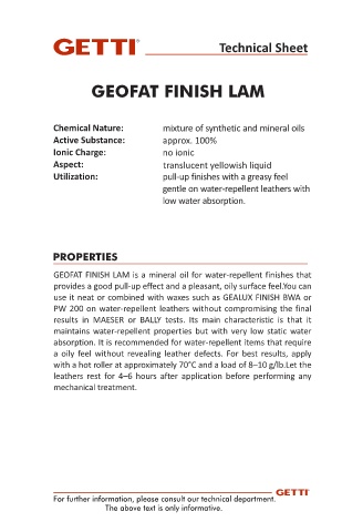 GEOFAT FINISH LAM is a mineral oil for water-repellent finishes that