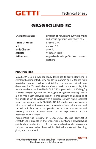 GEAGROUND EC is a wax especially developed to provide leathers an