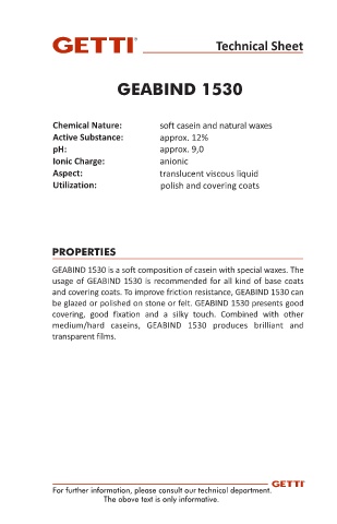 be glazed or polished on stone or felt. GEABIND 1530 presents good
