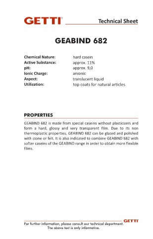 GEABIND 682 is made from special caseins without plasticizers and
