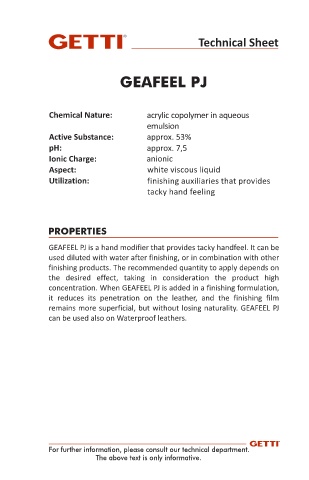 concentration. When GEAFEEL PJ is added in a finishing formulation,