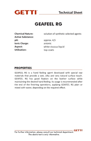GEAFEEL RG is a hand feeling agent developed with special raw