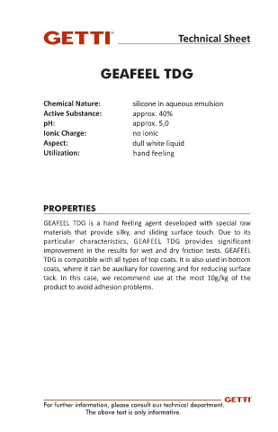 GEAFEEL TDG is a hand feeling agent developed with special raw