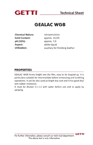 GEALAC WGB forms bright and dry film, easy to be topped-up. It is