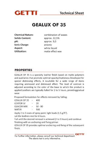 GEALUX OF 35 is a specialty leather finish based on matte polymers
