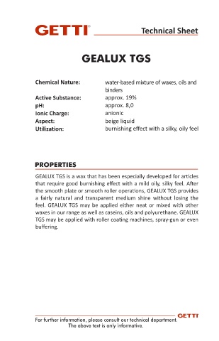 GEALUX TGS is a wax that has been especially developed for ar cles