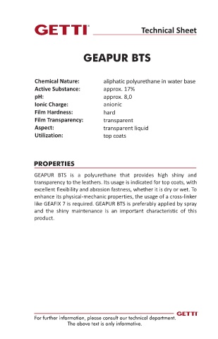 like GEAFIX 7 is required. GEAPUR BTS is preferably applied by spray