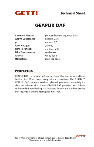 abrasion, whetter dry or wet. GEAPUR DAF provides matt finishes