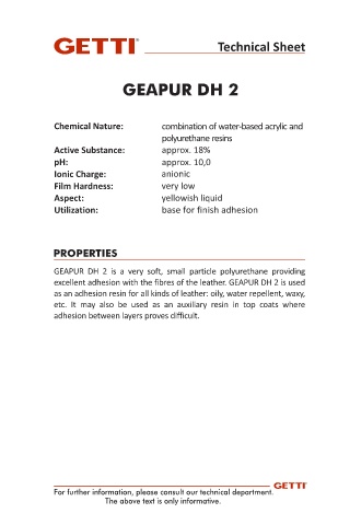 excellent adhesion with the fibres of the leather. GEAPUR DH 2 is used