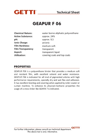 GEAPUR F06 is indicated for all kind of pigmented articles with high