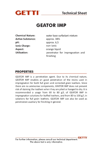 solutions for full grain leathers. GEATOR IMP can also be used as