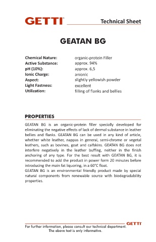 bellies and flanks. GEATAN BG can be used in any kind of article,
