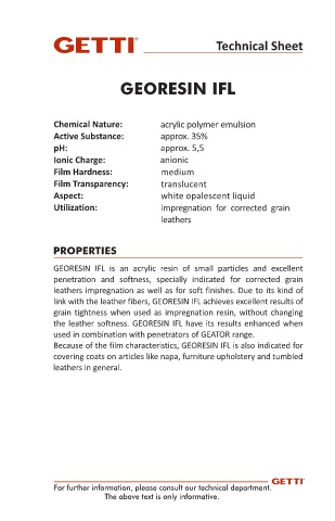 the leather softness. GEORESIN IFL have its results enhanced when
