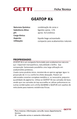 GEATOP K6 é um compacto formulado para acabamentos naturais