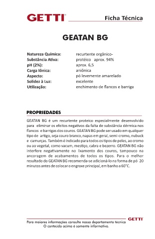 flancos e barrigas dos couros. GEATAN BG pode ser usado em qualquer