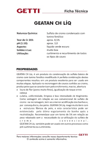 GEATAN CH Líq. é um produto da condensação do sulfato básico de